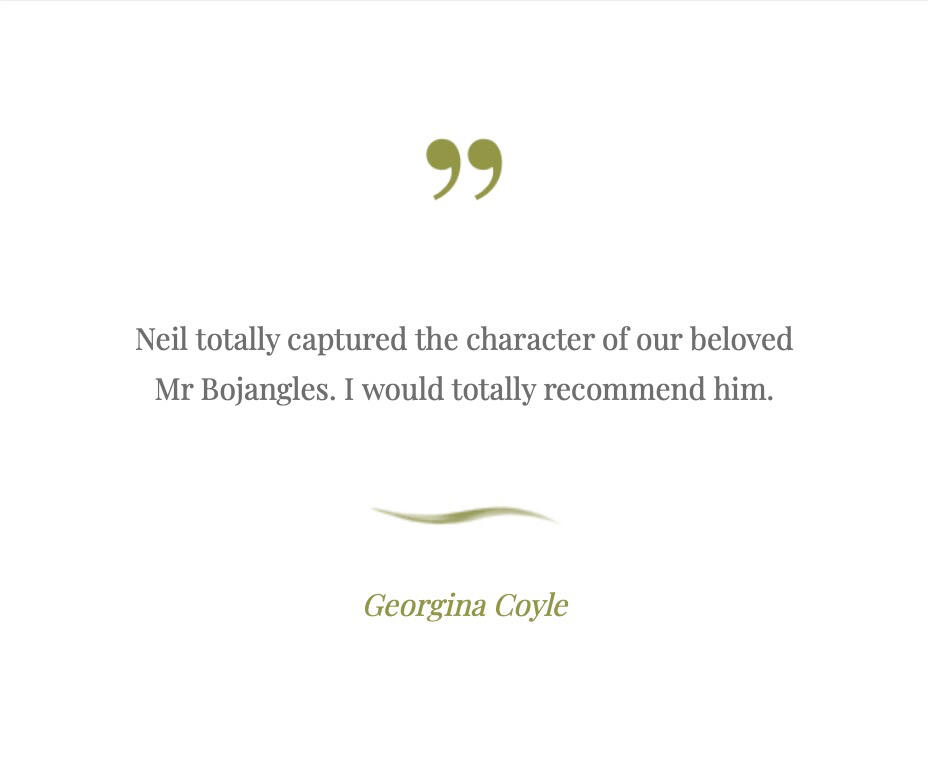 Once the painting is complete I will send the client a good quality photo of the final painting for approval. This is when the client can advise of any changes they would like. I strive to make every client completely happy with their portrait. However, if I cannot resolve the issue with the painting, clients can choose to have a 50% refund and refunded delivery charges.If the client would like changes once the approved painting has been shipped, the client must request them within 3 days of receiving the painting. The client must pay the delivery costs to return the painting back to the studio in its original packaging. If the client is not happy after further alterations and would like a refund, I retain the artwork for disposal and 50% of the total fee paid.Currency Exchange: